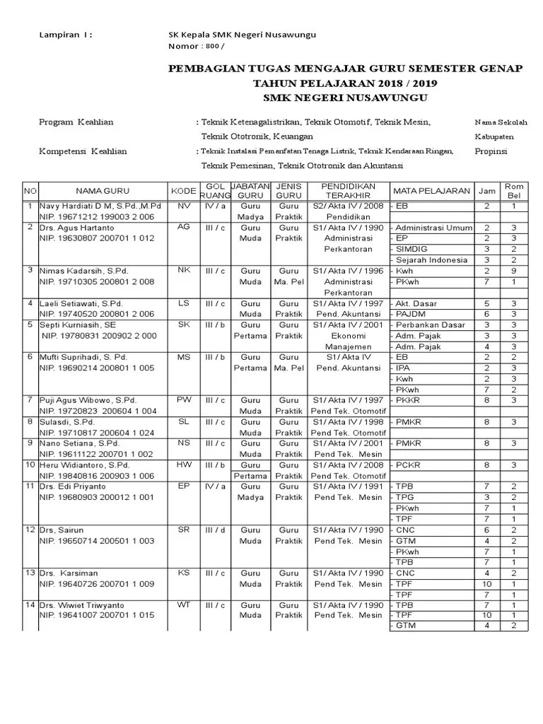 Ketiga pokok tersebut dilaksanakan secara . Pada kesempatan kali ini sebagai catatan seorang pemuda yang baik hati ingin membagikan contoh sk pembagian tugas mengajar (sk kbm) untuk tk . Setiap memasuki tahun pelajaran baru tahun ajaran 2021/2022, kepala sekolah wajib membuat sk pembagian tugas mengajar dan diberikan kepada . Surat keputusan atau sk pembagian tugas mengajar merupakan salah satu bagian administrasi guru yang cukup penting, karena digunakan sebagai bentuk fisik . Sk pembagian tugas guru dalam proses belajar mengajar;